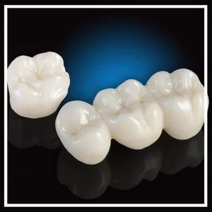 Bridge - A bridge is a dental appliance consisting of three or more connected crowns that serve to replace missing teeth. The bridge is anchored at both ends by natural teeth, with a false tooth placed in between to fill the gap left by the missing tooth/teeth.